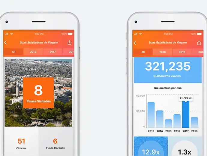 A cada nova viagem, nós atualizamos suas estatísticas de viagens para que você saiba quantos países visitou, qual distância viajou, quantas noites passou fora de casa e muito mais. Compartilhe suas estatísticas com os seus amigos e seguidores, ou simplesmente sinta o gostinho pessoal da vitória.